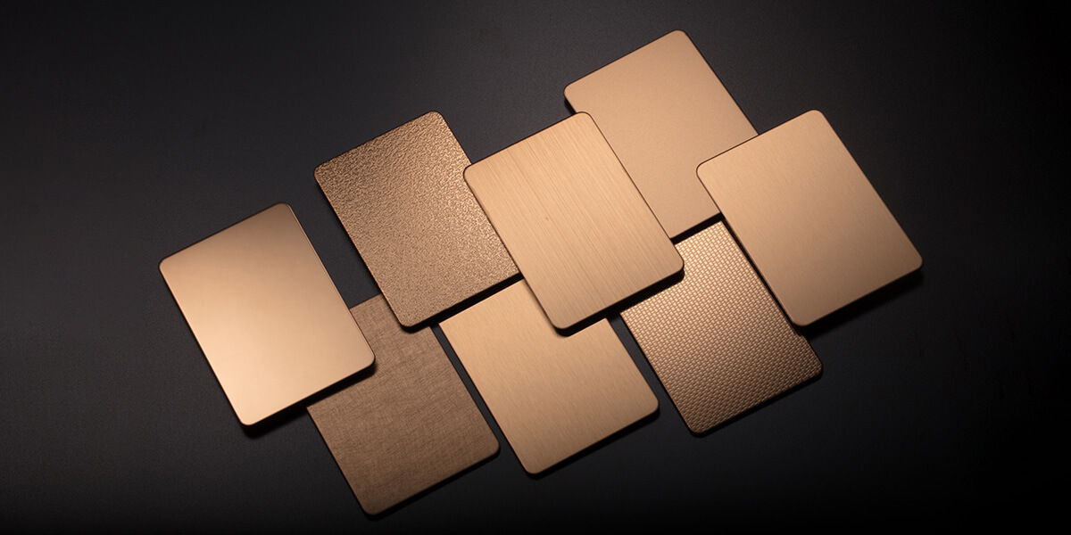 PVD can be coated on all kinds of stainless steel finish, but usually apply to finer finish such as Super Mirror (No.8), Bead Blasted, Hairline, Starlight, Linen..... it's widely used for architectural and decorative applications, such as wall panels, coping and trim, also artistic objects. If you are interested in our PVD coated stainless steel, just feel free to contact Stanch!